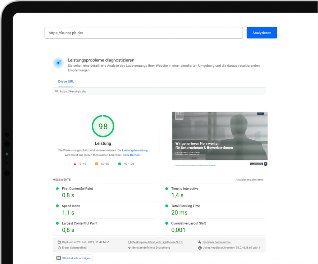 Die Website-Ladezeit ist einer der wichtigsten Aspekte. Denn wenn die Website für den Nutzer nicht gut aufrufbar und benutzbar ist, bringen die zuvor geleisteten Aufwendungen für Design, Inhalt & Layouts recht wenig. Daher sorgen wir für die bestmögliche Ladezeit im Web. primär auch für die mobilen Endgeräte.