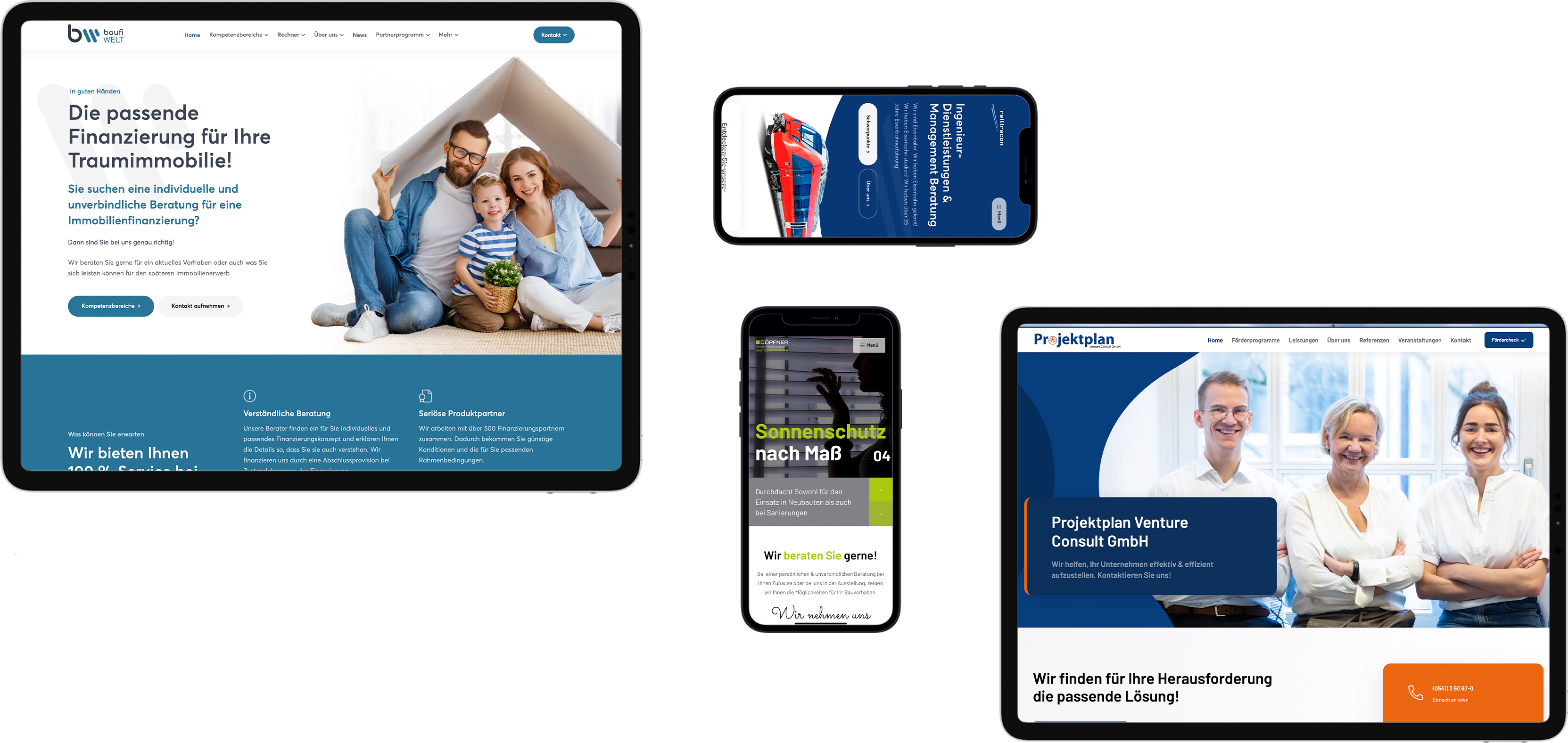 Wir sind auf jedes Projekt stolz. Die Herausforderungen, Ziele, und Wünsche des jeweiligen Kunden zu verstehen und somit ein Ergebnis zu schaffen, welches die Zielgruppe des Kunden begeistert und alle Inhalte perfekt präsentiert.